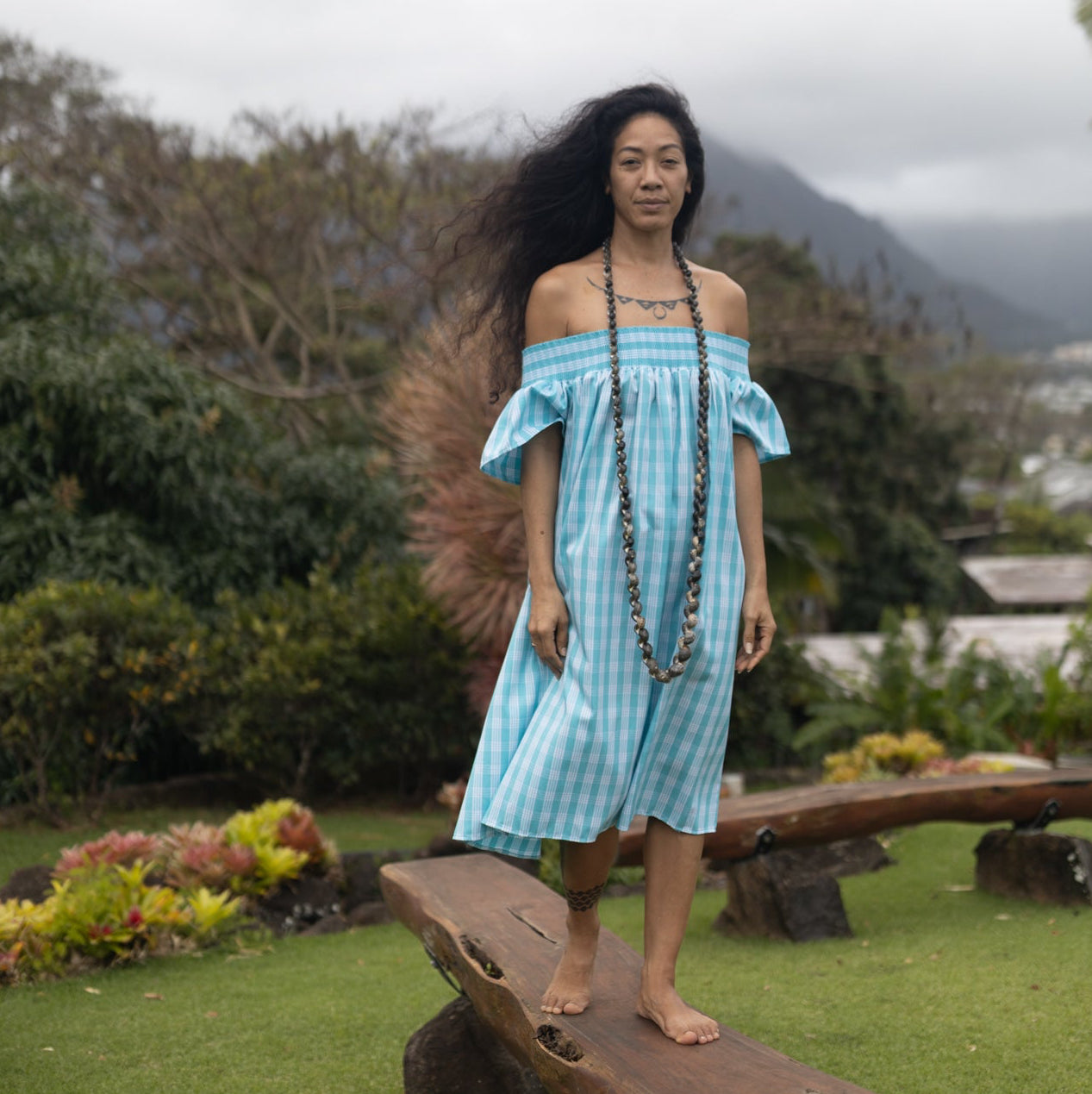 Building on the nostaligic elegance of our Ulu Top, the Ulu Midi features the classic off-the-shoulder elastic neckline on a mid length dress.